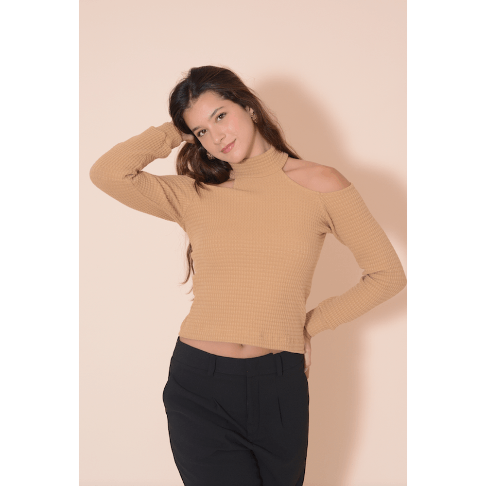BLUSA GOLA ALTA OMBRO ALGODÃO