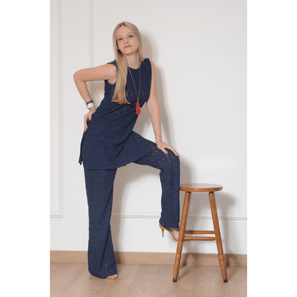 VESTIDO LONGO GOLA ALTA EST POA NAVY