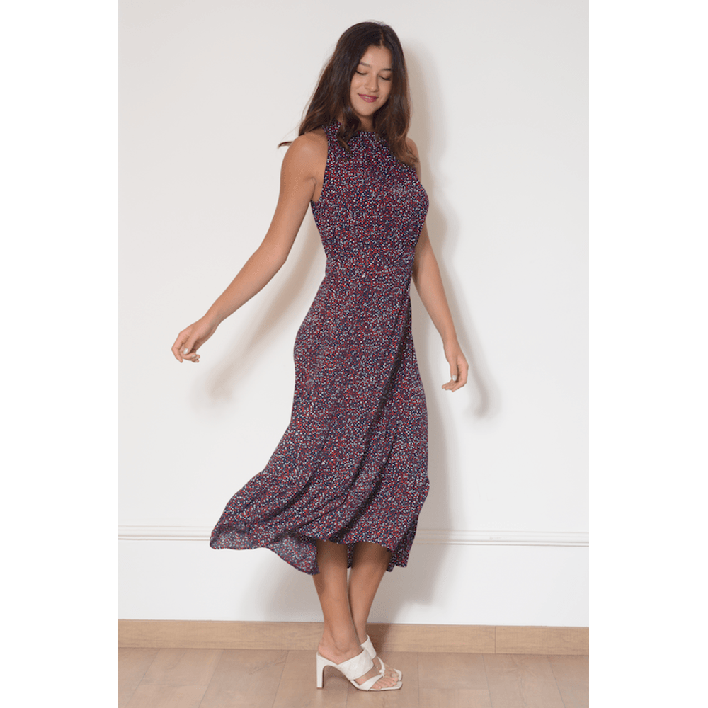 VESTIDO LONGO GOLA ALTA EST POA NAVY