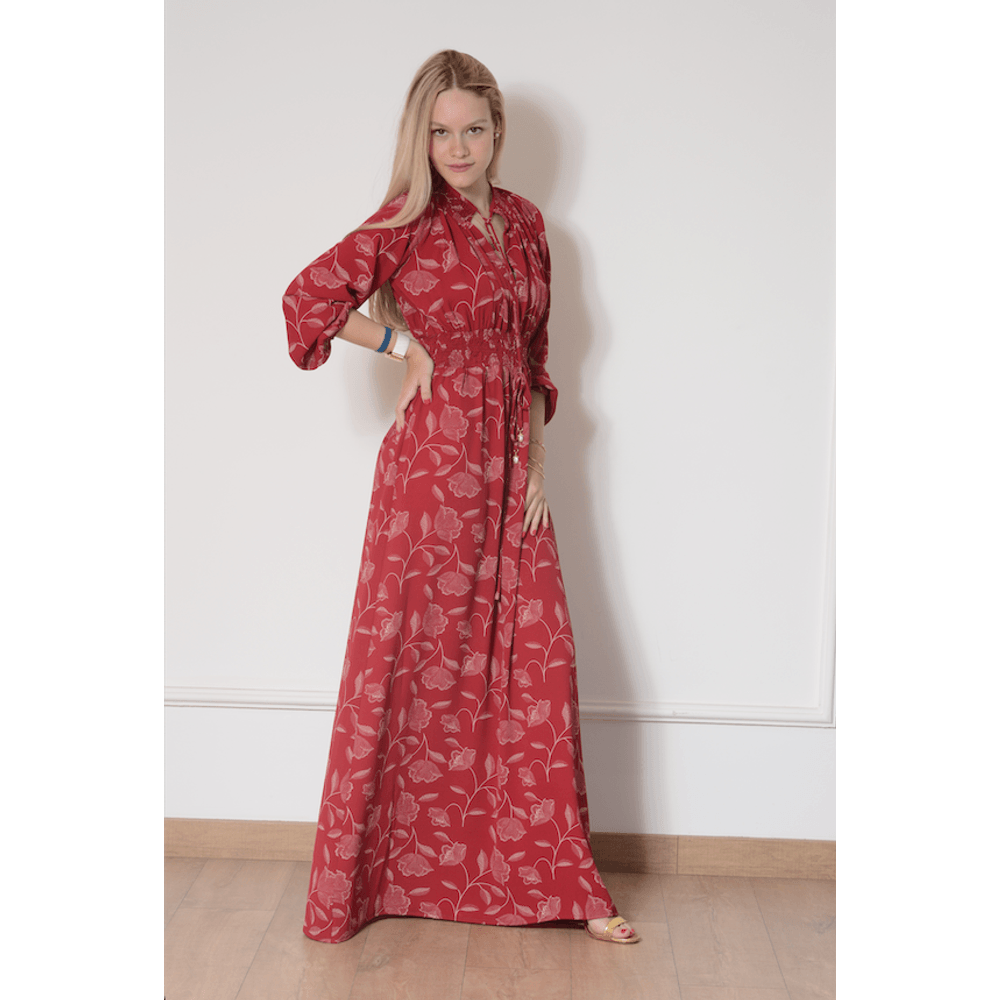 VESTIDO LONGO GOLA ALTA EST HIBISCO